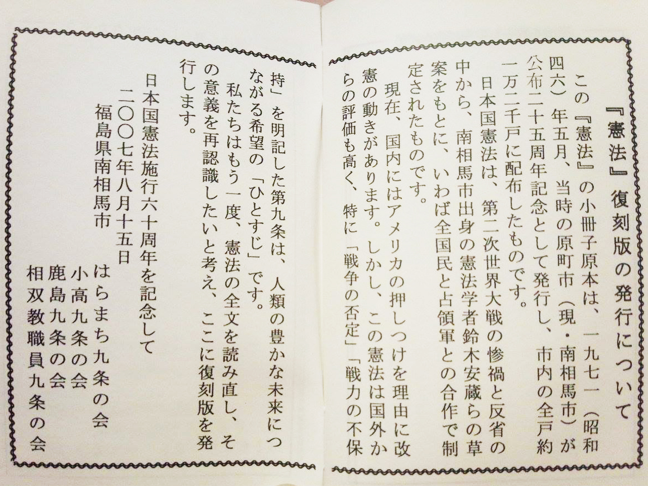 憲法9条を守り、戦争反対!脱原発を訴える::平和な日本を守る福島県南相馬市、はらまち九条の会